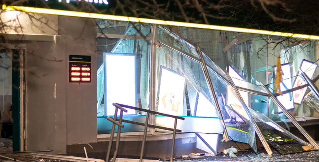 "Детонация была такой сильной, что разорвало не только сам банкомат, но и почти полностью разрушило все отделение: внутри осыпался потолок, а витрина выпала наружу", – сообщает издание.