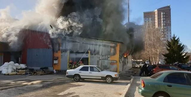 "6 декабря в 11:20 в Святошинском районе по ул. Победы, 123 на территории бывшей фабрики "Каштан" в одноэтажном металлическом ангаре (размером 20х20) возник пожар на площади ориентировочно 300 кв. м", – говорится в сообщении.