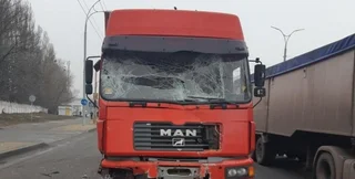 ДТП произошло на проспекте Академика Глушкова. Водитель фуры, не соблюдая ПДД, совершил столкновение с маршруткой.