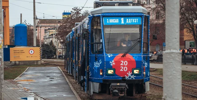 В Днепре пустили в рейс "новогодний трамвай" с гирляндами и снежинками