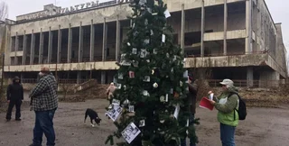 В Припяти впервые с момента аварии на Чернобыльской АЭС установили новогоднюю елку.