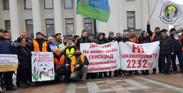 Около 50 человек, многие из которых с охотничьими собаками, находятся сейчас возле Верховной Рады. Об этом сообщает корреспондент Фокуса.