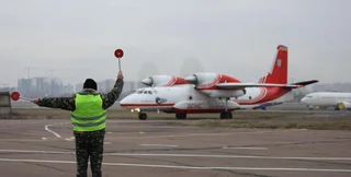 В аэропорту "Киев" группу Госслужбы по чрезвычайным ситуациям встречал секретарь СНБО Алексей Данилов и глава ГСЧС Николай Чечеткин.