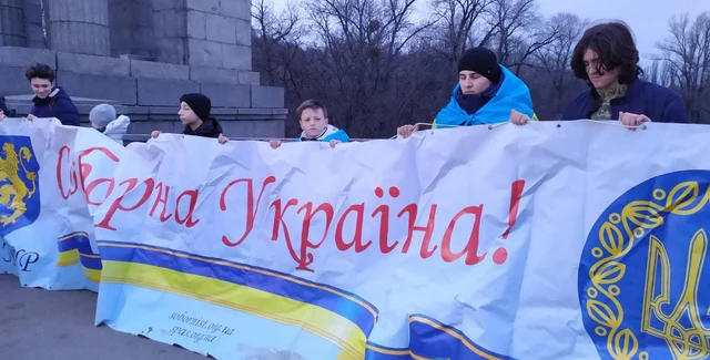 Берега Днепра в Киеве традиционно соединила живая цепь ко Дню Соборности