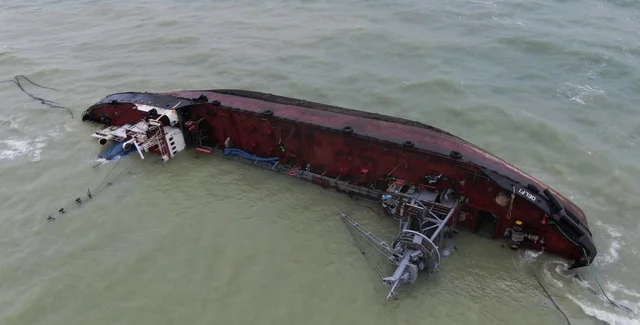 - Впоследствии танкер лег на бок, из него в море потек мазут. Спасателям удалось эвакуировать из корабля троих членов экипажа, включительно с капитаном.