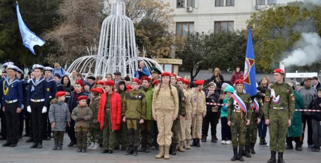 В шествии приняли участие местные школьники, члены российской "Юнармии", ученики кадетских классов и дети, состоящие в "Школе юных моряков".