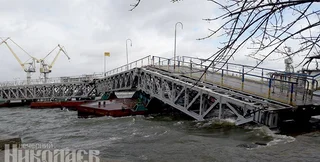В Николаеве рухнула часть пешеходного понтонного моста.