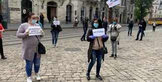 Предприниматели провели акцию протеста у городского совета во Львове. Они требовали разрешить им работать с 1 мая. Протестующие были в масках и перчатках и соблюдали социальную дистанцию.