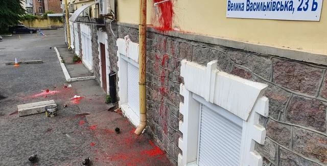 "У здания активисты жгли файеры. Затем был звук, вероятно вызванный смесью с краской. Были задержаны несколько человек, точное количество пока уточняем. Они направлены в Печерский отделения полиции. Их действиям будет дана правовая оценка", – сообщили в полиции.