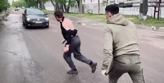 Видео самой драки на ролике отсутствует, но в его конце видно, что водитель стоит в разорванной кофте и с ранами на лице.