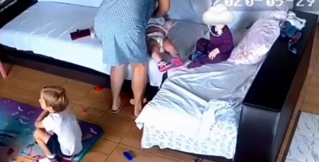 На видео четко видно, как "воспитательница" грубо бросает Олесю на диван, потом берет заранее подготовленный "кляп": подушку завернутую в простыню, накладывает ее на лицо плачущей девочки, плотно завязывает и уносит ребенка из комнаты. Надо отметить, что время экзекуции на диване присутствует еще один ребенок, и еще один играет на полу.