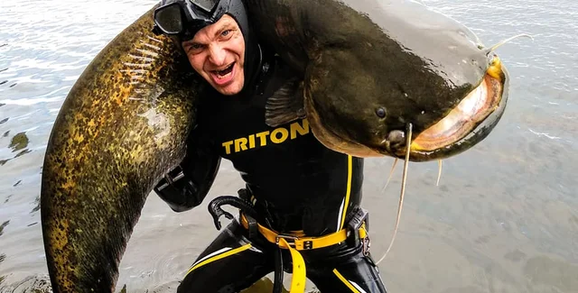 Видеоблогер из Днепра Александр Громадский в ходе подводной охоты загарпунил огромного сома. 51-килограммовая рыбина стала крупнейшей в списке его "усатых трофеев" за последние восемь лет, написал он в Facebook.