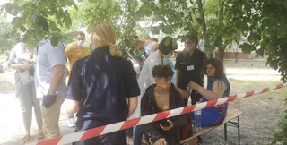 В данный момент пострадавшей женщине и ее сыну оказывают первую медицинскую помощь. Также рядом с семьей находится Николай Тищенко, по требованию народного депутата пострадавшим дали воду с лимонным соком. По утверждению политика, лимонный сок помогает при стрессе.