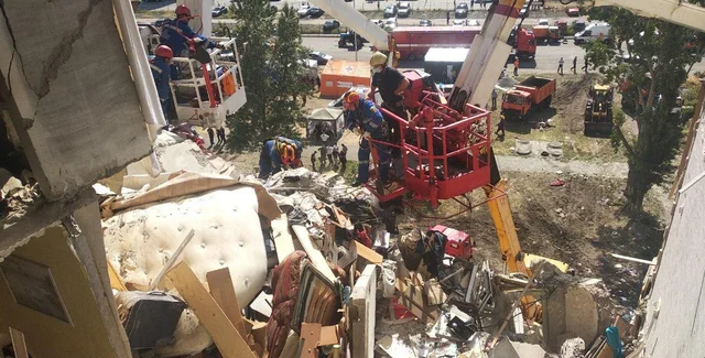 Громкий хлопок, сильное сотрясение и густое желтое облако дыма. Именно так описывают взрыв жители дома по ул. Соломии Крушельницкой, 1/5 в Киеве. В воскресенье, 21 июня, в 10 утра вследствие взрыва газовоздушной смеси обрушилось 5 этажей десятиэтажного дома. Спасателям удалось эвакуировать 21-го жителя дома, еще троих жильцов нашли мертвыми. Сколько еще людей находятся под завалами – неизвестно. Фокус побывал на месте трагедии