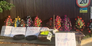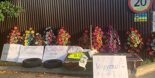 К дому экс-главы НБУ Якова Смолия принесли гроб и похоронные венки