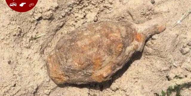 Издание пишет, что граната похожа на боевую – Ф1 с запалом 1941 года.