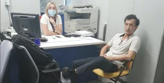 Террорист привязал к своей ноге шнурок, который ведет из рюкзака, где предположительно находится бомба.