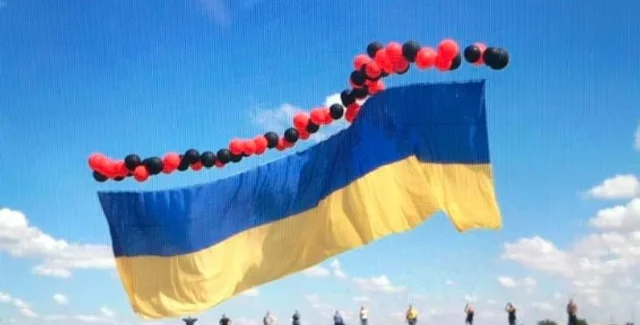 В субботу, 15 августа, украинские волонтеры запустили в небо 25-метровый украинский флаг на административной границе с аннексированным Россией Крымом.
