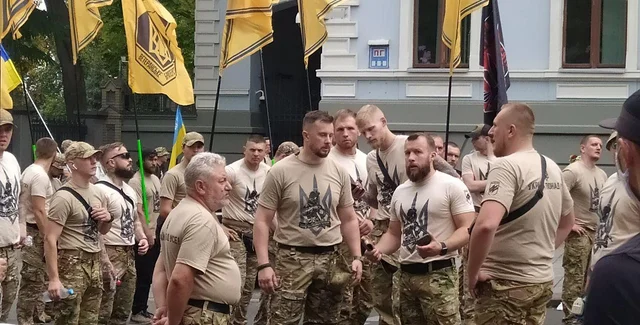 Кроме этого, Билецкий подчеркнул, что активисты "Нацкопуса" присутствуют на сегодняшней акции, в первую очередь, как ветераны полка "Азов". Билецкий не считает акцию политической, так как по его мнению, она касается более фундаментальных вопросов, как выживание страны.