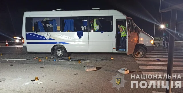 В сообщении Нацполиции говорится, что вблизи города Люботин Харьковского района Харьковской области на автодороге неизвестные автомобилем "Мицубиси" заблокировали движение микроавтобуса "Мерседес", в котором находились представители общественной организации, и заставили его остановиться. После этого из "Мицубиси" вышло несколько человек и из травматического оружия обстреляли микроавтобус, после чего скрылись на своем автомобиле.