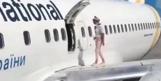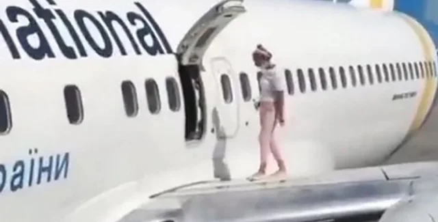В Международном аэропорту "Борисполь" авиапассажирка открыла аварийный выход самолета и прогулялась по крылу самолета.