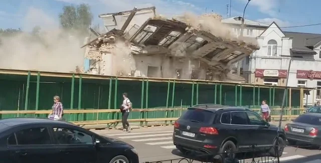 Спустя несколько часов после инцидента строительный забор восстановили и работы по демонтажу продолжили.