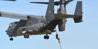 В рамках международных учений Rapid Trident-2020 украинские бойцы Сил специальных операций (ССО) провели беспарашютное десантирование с американских конвертопланов Bell V-22 Osprey.