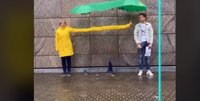 В нем она с помощью визуальных эффектов прячет от дождя юного киевлянина. Ролик подписан фирменной фразой "В Киеве важен каждый".