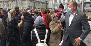 В понедельник, 12 октября, на площади Независимости в Сумах предприниматели протестовали против карантинных ограничений в связи с попаданием города в "красную" зону.