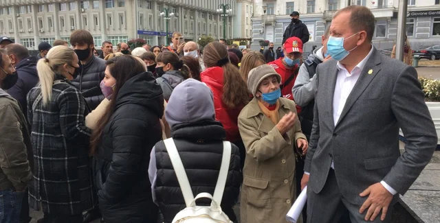 К протестующим выходили мэр Сум Александр Лысенко и управляющая делами горисполкома Юлия Павлик, сообщает местное издание "Сумські дебати". Чиновники рассказали, что на заседании городского совета должны рассмотреть вопрос о запрете работы ресторанов, кафе, салонов красоты, магазинов, спортзалов и других заведений.