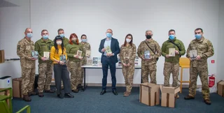 Кузь Олег Петрович, в.о. заступника начальника Навчального центру: "Як вас позитивно вразила наша частина, так і нас приємно здивувала ця добірка книг. Я б їх усі прочитав. Дякуємо за добру справу та допомогу".