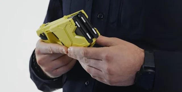 Тазер выстреливает два небольших электрода, передающих электрический заряд, поступающий по проводам. Выстрел происходит благодаря встроенному в картридж баллончику со сжатым азотом. После выстрела картридж заменяется.