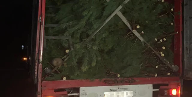 В Черниговской области недалеко от границы России был задержан грузовик "Рено" с нелегально вырубленными новогодними деревьями.