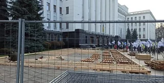 В Киеве около здания Офиса президента начали строить ледяной каток. Об этом сообщает нардеп от "Европейской солидарности" Алексей Гончаренко.