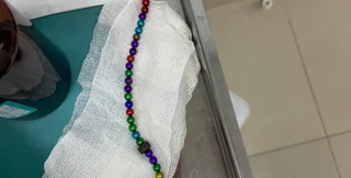 Как сообщил детский хирург Дмитрий Грицак, девочке 2 года и семь месяцев. В больницу она поступила с жалобами на боль в животе. Рентген показал, что ребенок проглотил магнитные шарики, которые попали в кишечник.