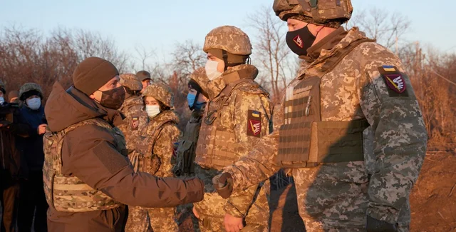 "Хочу поблагодарить от каждого украинца за то, что защищаете наши жизни. Берегите себя, вы герои. Я благодарен вам", — заявил глава государства и вручил военным некие ценные подарки. Военнослужащие тоже не оставили главнокомандующего без подарка — вручили инсталляцию, составленную из осколков вражеских артиллерийских снарядов, сообщают в ОП.