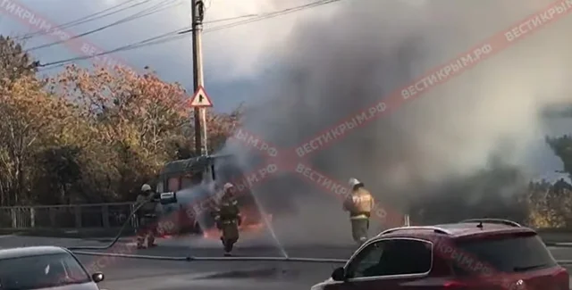 Микроавтобус Mercedes Sprinter полностью уничтожен огнем на Южнобережном шоссе в районе поселка Ай-Даниль под оккупированной Ялтой, сообщает издание "Вести Крыма".