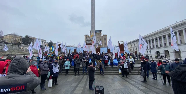 Протестующие ФОПы выступают против введения кассовых аппаратов, а также локдауна в январе 2021 года.