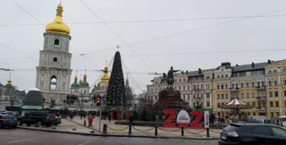 На главную елку Украины на Софийской площади в Киеве повесили звезду вместо шляпы.