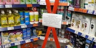 Согласно ограничениям, на время действия карантина продажа бытовой химии, носков и колготок запрещена. В мессенджерах пользователи делятся фотографиями соблюдения ограничений в супермаркетах.