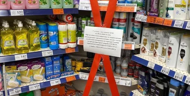 В магазинах опечатывают полки с товаром для ухода за обувью, полотенец и прочей бытовой химией. На объявлениях указывают такую причину ограничения продажи: "В связи с постановлением Кабинета министров Украины от 09.12.2020 №1236 "Про установление карантина и имплементации ограничительных противоэпидемических мер с целью запобегания распространения на территории Украины острой респираторной болезни COVID-19, вызванной коронавирусом SARS-CoV-2 в период с 08.01.2021 по 24.01.2021 года"