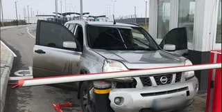 Водитель Nissan X-Trail заехав на территорию КПВВ закрылся у себя в машине. Он не давал осмотреть машину, после чего решил без соответствующего сигнала поехать дальше. Автомобилист врезался в механизм принудительной остановки транспорта – болард.