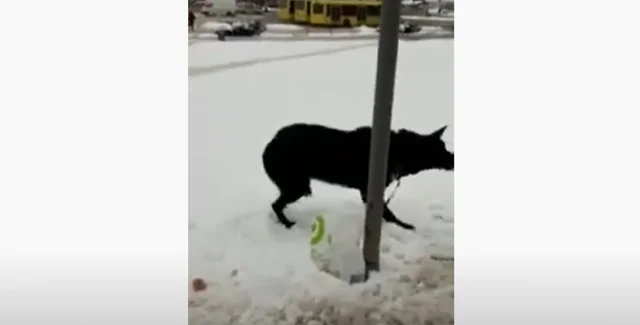 Собаку заметили в людном месте — около торгового центра King Cross Leopolis на остановке транспорта.