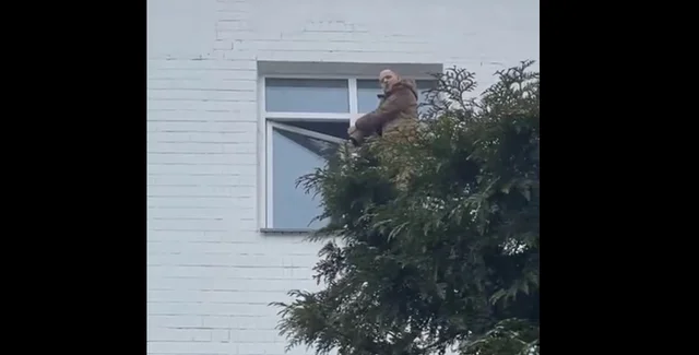 В случае, если к нему "хоть на метр" приблизятся полицейские, задержанный также угрожает выпрыгнуть из окна. На опубликованном в соцсетях ролике, во второй части видео-склейки начинаются сумерки, а под зданием уже находится машина спасателей с подъемником.