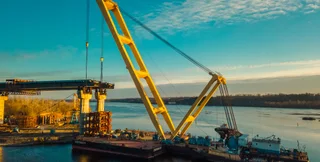 В Запорожье прибыл крупнейший плавкран Европы для продолжения строительства мостов (фото)