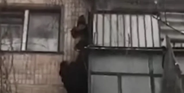 Как сообщает ТСН, сначала ребенок, одетый в зимние вещи, стоял на внешней стороне балкона, затем повис, зацепившись одеждой за крюки.