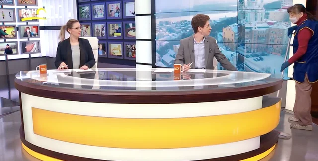 В прямом эфире программы "Ранок на Суспільному", которая транслируется на телеканале "Суспільне", уборщица неожиданно зашла в студию и начала мыть полы. Инцидент произошел 17 февраля.