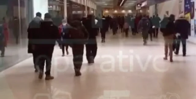 По словам очевидцев, посетителям спортзала, который находится в здании центра, даже не дали возможности переодеться прежде чем выйти на улицу.