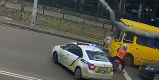 Работник курьерской службы пытался скрыться от полицейских на Днепровской набережной, двигаясь против движения автомобилей.