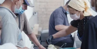 "Продукты, из которых готовят все эти блюда, жертвуют благодетели Введенского монастыря. Кто-то привозит крупы, кто-то — масло и овощи. Некоторые помогают деньгами. Ежедневно сюда приходят сотни люди, попавшие в сложные жизненные обстоятельства. Кто-то, например, приехал в Киев, чтобы заработать на жизнь, но попал на нечестных работодателей. У кого-то неблагополучные родители, и для них единственная возможность поесть один раз за весь день – это получить еду из рук монахов. А кто-то так и не смог справиться со своими страстями и страдает от зависимости – теперь ни работы, ни жилья, ни денег, ни родных. У этих людей нет улыбки на лице, не слышен смех. Десятки грустных глаз, взгляд в пол", − рассказывает телеведущая.